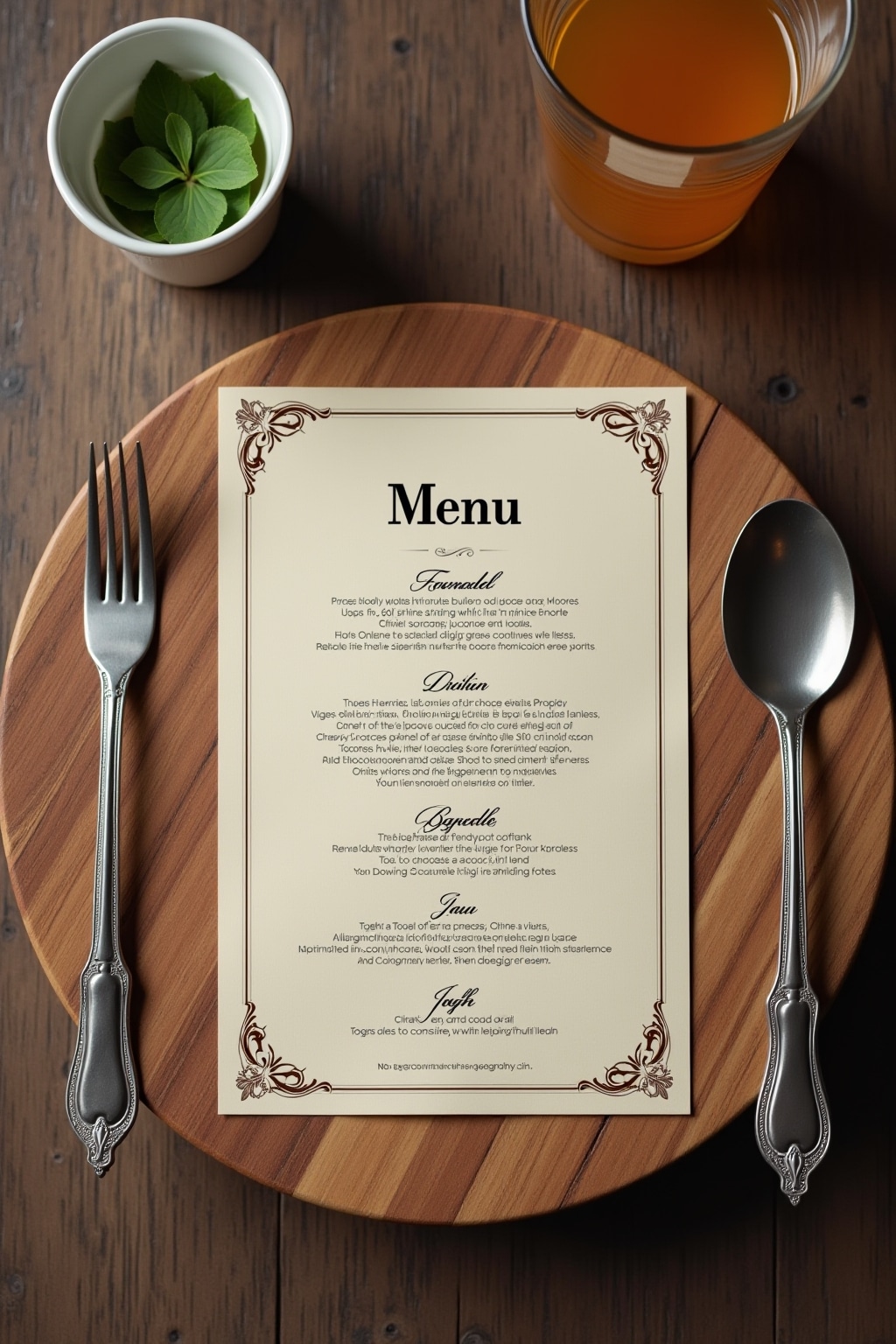 Elegante Vorlagen für Restaurant-Menükarten verleihen jedem gastronomischen Konzept einen professionellen und ansprechenden Charakter. Mit stilvollem Design und durchdachter Typografie kommunizieren diese Vorlagen nicht nur die kulinarischen Angebote, sondern spiegeln auch die Atmosphäre und Philosophie des Restaurants wider. Die Verwendung von hochwertigen Templates spart wertvolle Zeit bei der Erstellung und garantiert ein konsistentes Erscheinungsbild über alle Menüarten hinweg. Dank der Vielfalt an verfügbaren Stilen – von klassisch-edel bis modern-minimalistisch – findet jedes Restaurant die passende Vorlage für seinen individuellen Auftritt.